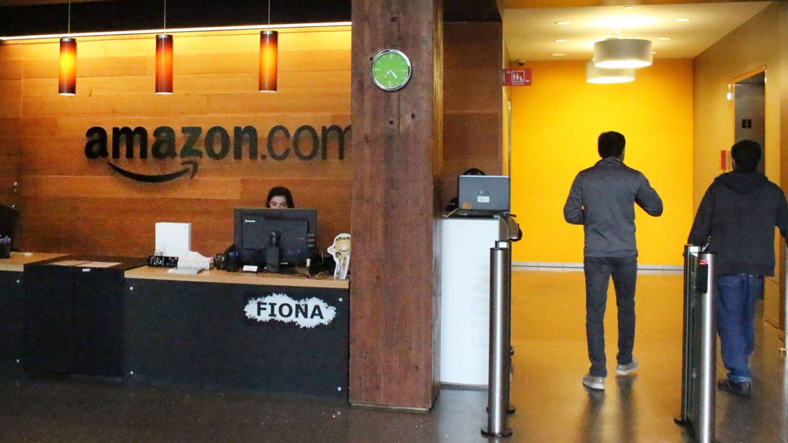A reception desk at Amazon offices in downtown Seattle, Washington.